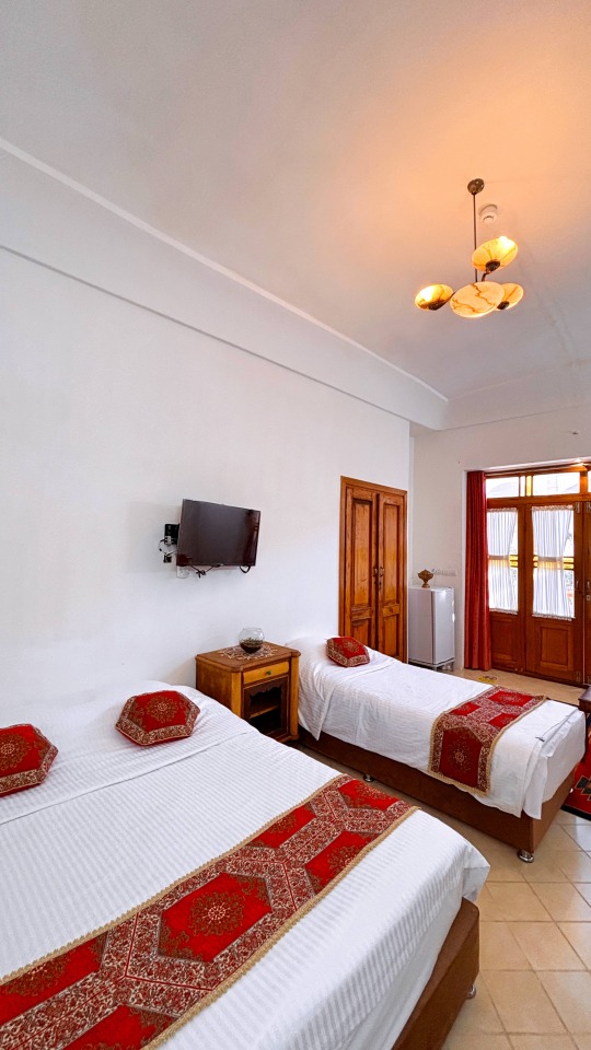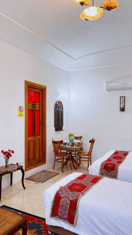 با سه تختِ آراسته، نگینی زیبا در این سرای کهن است.فضایش پر از حسِ خوبِ اصالت است؛ گویی تاریخ در آن نهفته تا مهمانانش را در آغوش بگیرد و خستگی سفر از تن بزداید.